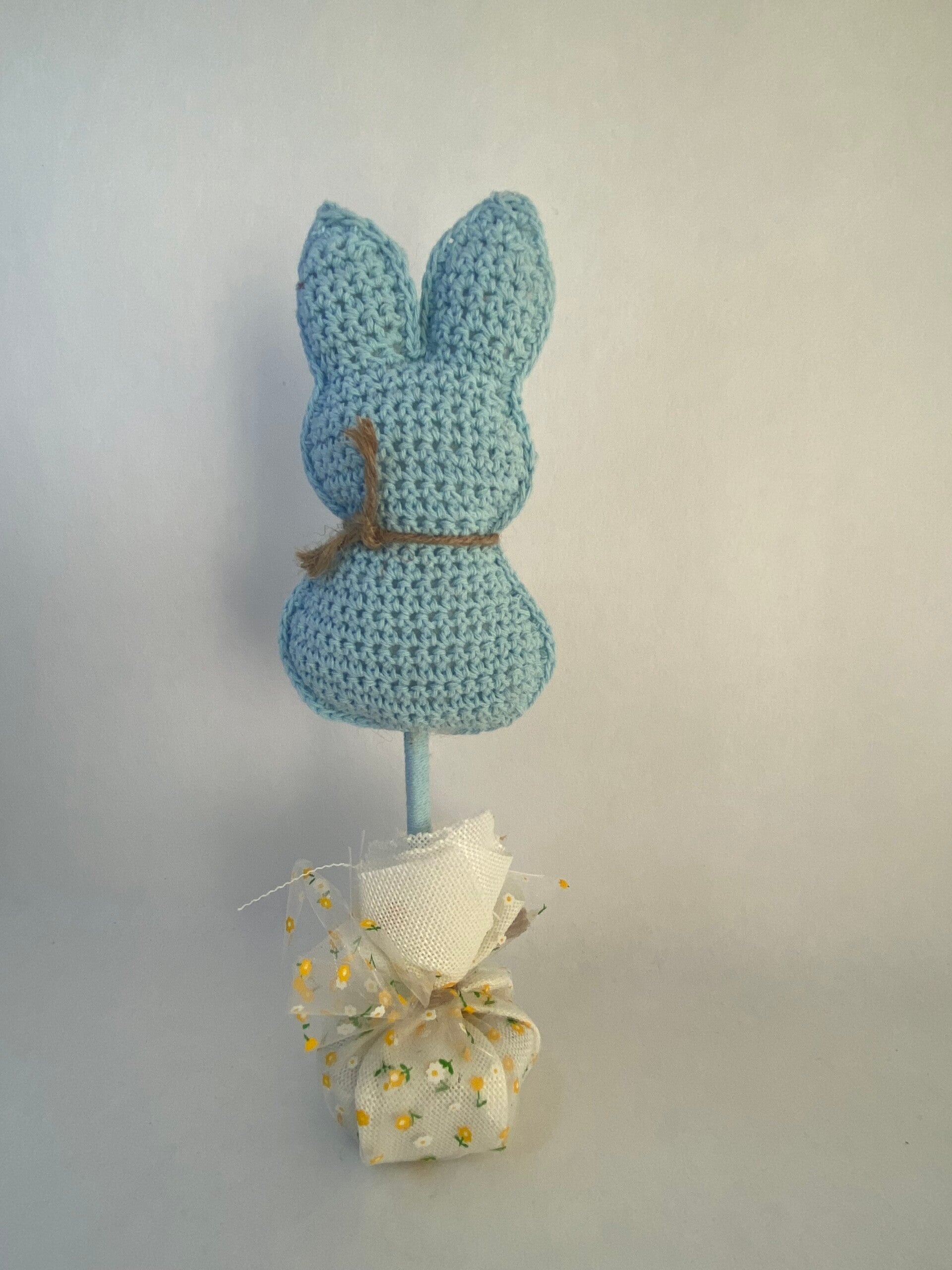 Leuke gehaakte konijnen op stok, ze zijn in elke kleur te bestellen en zijn ca. 27 tot 32 cm lang